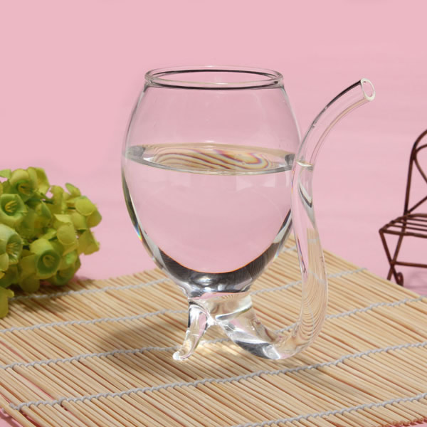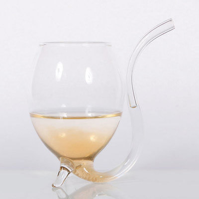 - Hand crafted from quality borosilicate material, the whimsical looking glass features a curved stem that is hollowed out to make a drinking draw, so you can sip your drink just like a vampire sucks blood, while the highly transparent wall transforms your beverage into a glistening liquid light.